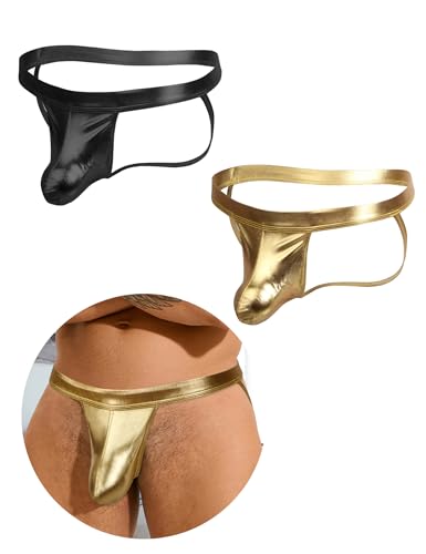 ohyeahlady Jockstrap Cuir pour Homme String Homme Sexy Hot Tanga Grande Taille Ouvert Gay Slip Lingerie sous Vetement Thong Underwear(Doré,M)