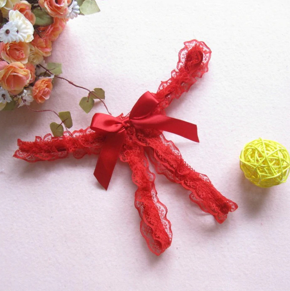 Penthouse Escapade Sexy - String ouvert en dentelle avec nœud (rouge) - M/L