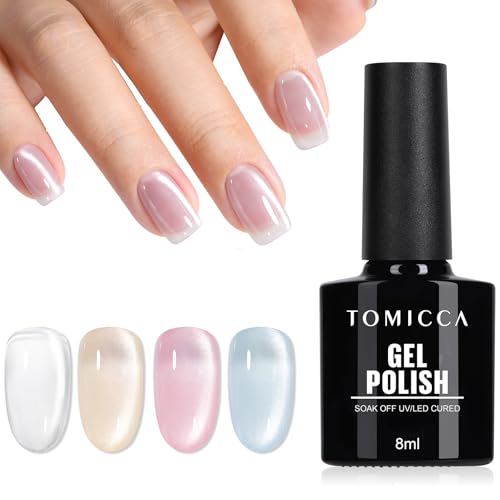 TOMICCA Cat Eye Gel Nail Polish, 4 Couleurs Argent Nude Violet Clair Bleu Clair Vernis Semi Permanent Magnétique Soak Off UV/LED Vernis à Ongles Pour Nail Studio & DIY Home, 8ml