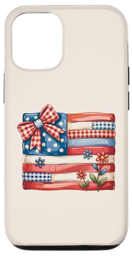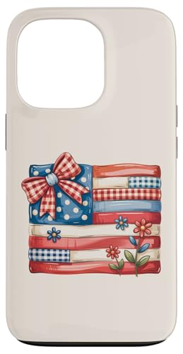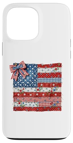 Drapeau américain Style Patchwork Fleurs Coquette Coque pour iPhone 13 Pro Max