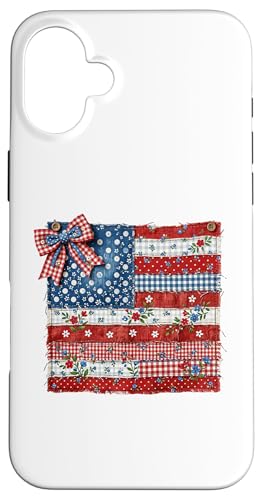 Patchwork Style Coquette Drapeau Américain Fleurs Coque pour iPhone 16 Plus