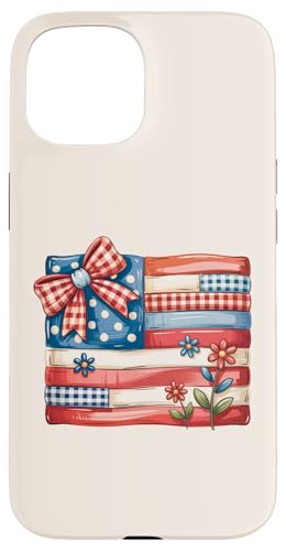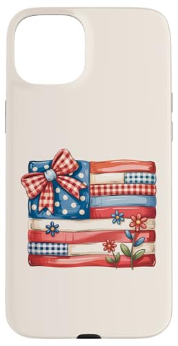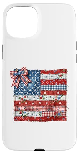 Patchwork Style Coquette Drapeau Américain Fleurs Coque pour iPhone 15