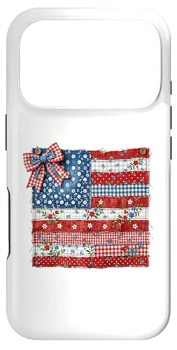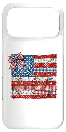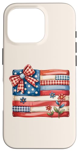 Patchwork Style Coquette Drapeau Américain Fleurs Coque pour iPhone 16 Pro
