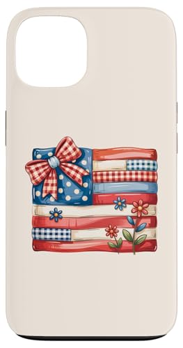 Patchwork Style Coquette Drapeau Américain Fleurs Coque pour iPhone 13