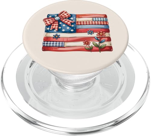 Drapeau américain Style Patchwork Fleurs Coquette PopSockets PopGrip pour MagSafe