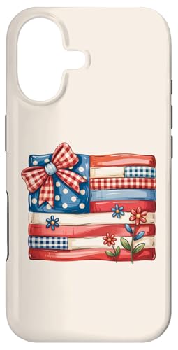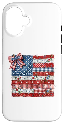 Drapeau américain Style Patchwork Fleurs Coquette Coque pour iPhone 16