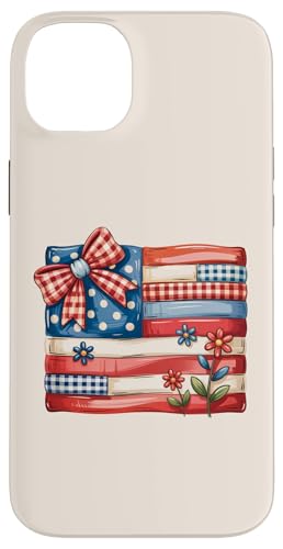 Patchwork Style Coquette Drapeau Américain Fleurs Coque pour iPhone 14 Plus