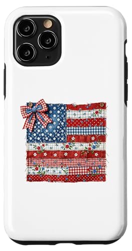 Patchwork Style Coquette Drapeau Américain Fleurs Coque pour iPhone 11