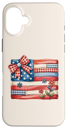 Drapeau américain Style Patchwork Fleurs Coquette Coque pour iPhone 16 Plus