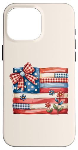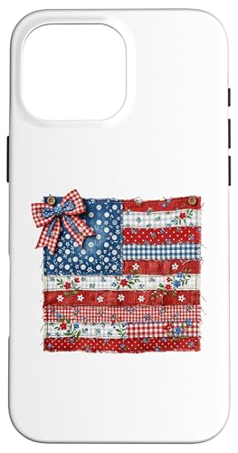 Patchwork Style Coquette Drapeau Américain Fleurs Coque pour iPhone 16 Pro Max