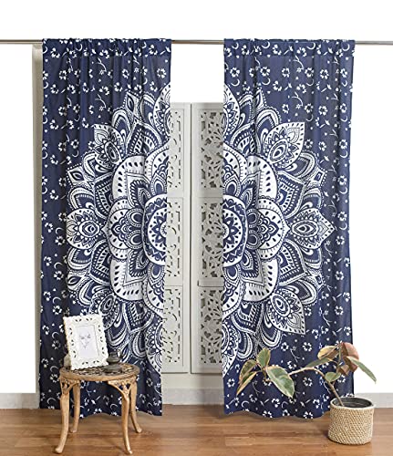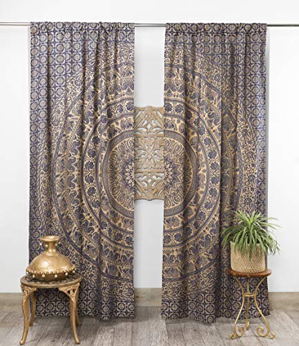 Popular Handicrafts Rideaux bohèmes, Style Indien Hippie, Motif Mandala éléphant, Bleu et doré