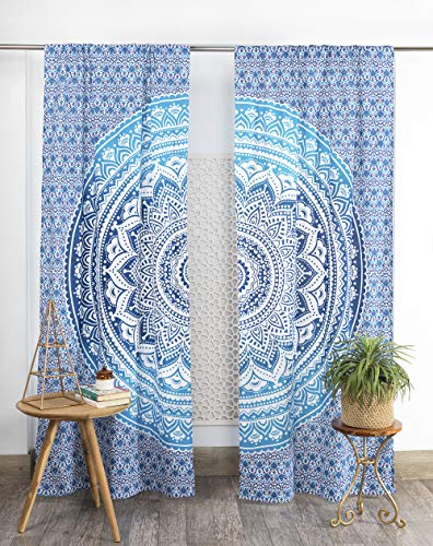 Popular Handicrafts Rideaux bohèmes ombrés à Motif Mandala - Style Indien Hippie - Bleu