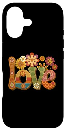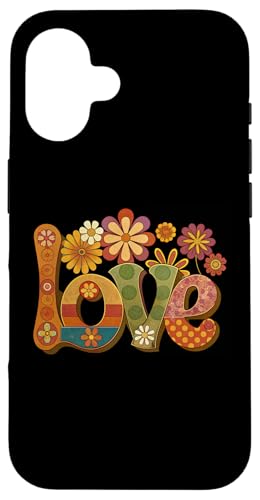 Signe d'amour et de Paix, Fleurs, Style Hippie des années 60 et 70 Coque pour iPhone 16 Plus