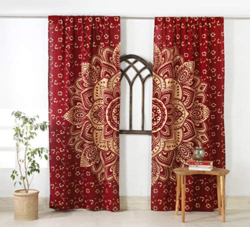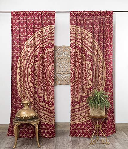 Popular Handicrafts Rideaux bohèmes à Motif Mandala - Style Indien Hippie - Ombré (Bordeaux et doré)
