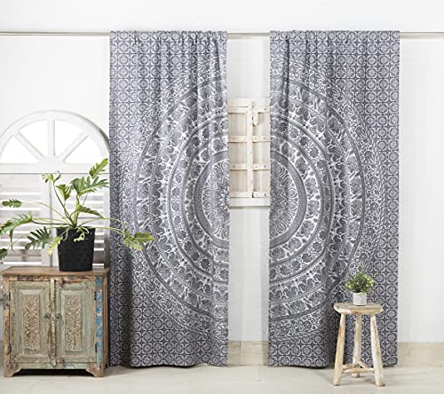 Popular Handicrafts Lot de 2 Rideaux à cantonnières bohèmes Style Indien Hippie avec Motif Mandala - Filtrage de la lumière - Gris argenté