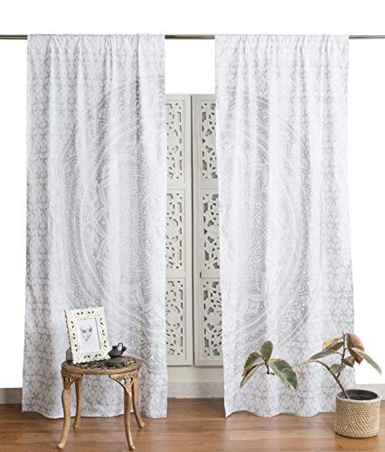 Popular Handicrafts Rideaux bohèmes, Style Indien Hippie, Motif Mandala éléphant, Blanc et doré