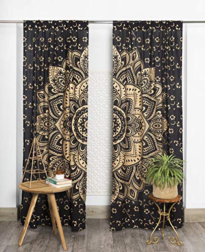 Popular Handicrafts Rideaux bohèmes à Motif Mandala - Style Indien Hippie - Ombré Passion (Noir et doré)