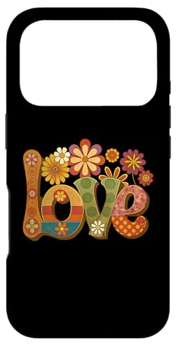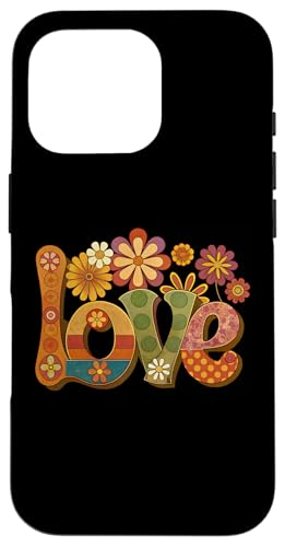 Signe d'amour et de Paix, Fleurs, Style Hippie des années 60 et 70 Coque pour iPhone 16 Pro