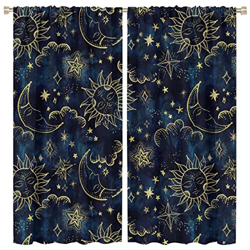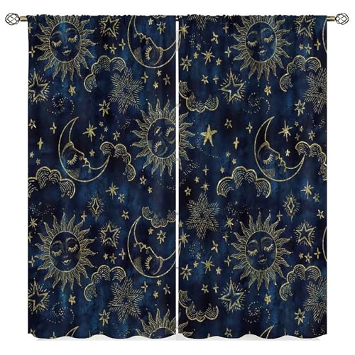 SXXLDNG Lot de 2 Rideaux de fenêtre avec Motif Soleil et Lune - Style Indien Hippie - pour Salon, Bureau - 106 x 114 cm