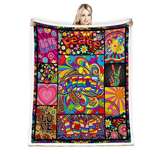 Juirnost Couverture Polaire réversible Douce et Confortable pour canapé, lit, Sofa, Style Hippie des années 70