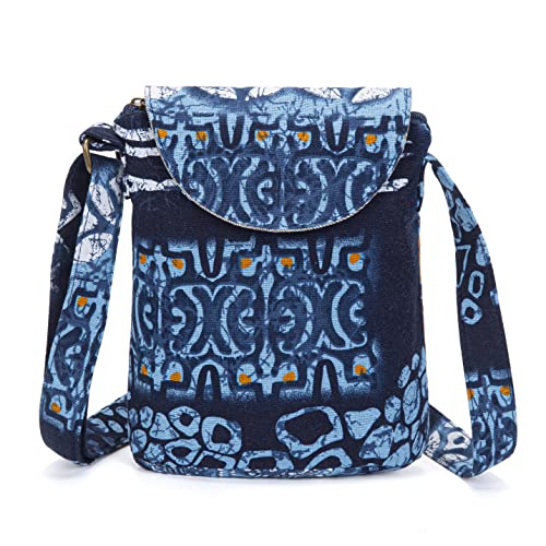 OPQRSTU Sac à bandoulière rétro en toile pour femme - Style hippie bohème, bleu/blanc