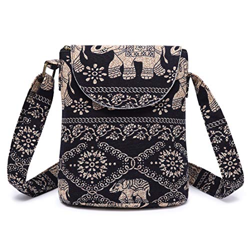 OPQRSTU Sac à bandoulière rétro en toile pour femme, style hippie, bohème, Noir #2., Long7 High9 Width4