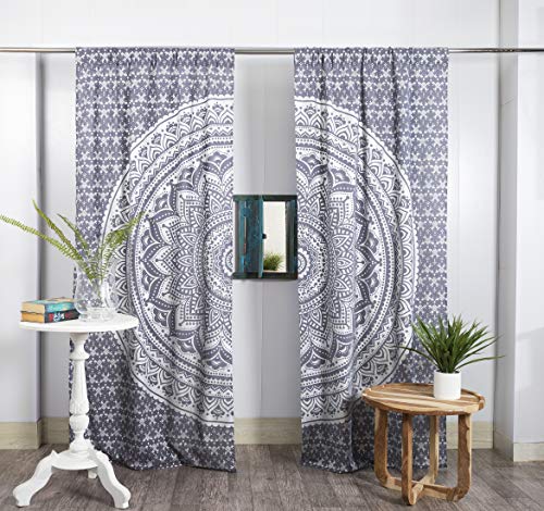 Popular Handicrafts Rideaux bohèmes à Motif Mandala - Style Indien Hippie - Ombré Passion (Bleu et argenté)