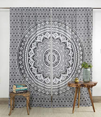 Popular Handicrafts Rideaux bohèmes à motif Mandala, style indien hippie, Ombré noir et gris