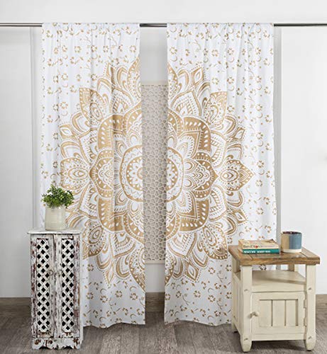 Popular Handicrafts Rideaux bohèmes à Motif Mandala - Style Indien Hippie - Ombré (Blanc et doré)