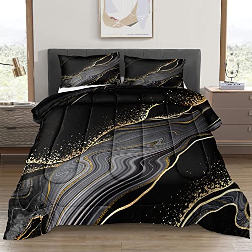 Bedding_Dreamer Parure de lit avec Couette en marbre Noir et doré, Motif Abstrait, Style bohème Hippie, pour Grand lit, Noir