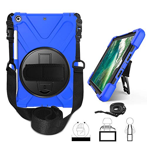 Yoomer Coque hybride à trois couches pour iPad 9.7 2017/2018, résistante aux chocs, rotation à 360 degrés avec béquille, dragonne, bandoulière et porte-stylet pour iPad 6ème 5ème génération 9,7"