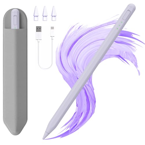 Stylet Crayon pour iPad 2018 à 2023,Compatible avec Apple iPad 10/9/8/7/6th,Mini 6/5th,Air 4/3th,Pro 11''/12.9'',11-inch A16/Air 11 M3/Air 13 M3,Stylet capacitif avec 4 Embouts de,Blanc