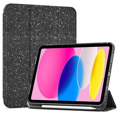 ProCase Coque Porte-Stylet pour iPad A16 11 Pouces 2025 11ème Génération, iPad 10ème Génération 10,9 Pouces en 2022, Nouvel Étui Amélioré, Housse de Protection Anti-Chute -Noir pailleté