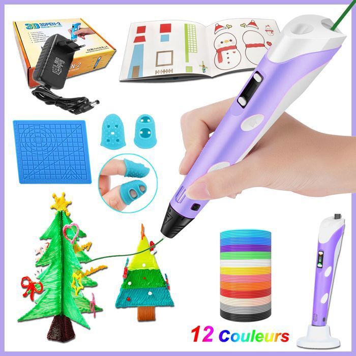 Stylo 3D Professionnel pour Enfant - avec 12 Couleurs de Filament PLA 1.75mm avec Livre de Dessin 3D et Protège doigts
