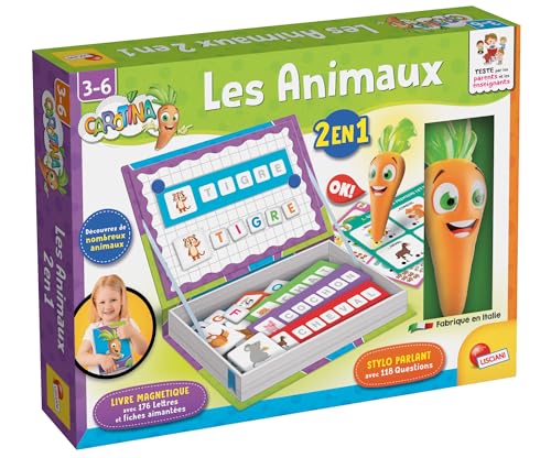 Lisciani - Carotina - Les Animaux 2 en 1 - Jeu Éducatif Enfant de 3 à 6 Ans - Livre Magnétique Lettres et Animaux - Stylo Parlant avec Questions - Lettres et Fiches Magnétiques - Apprendre à Lire