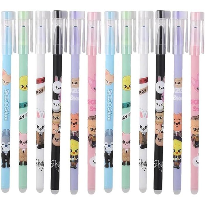 Lot de 12 Stylo Effacables6 Designs Skzoo Différents2 Stylos par DesignStylo GommeNoirparfait pour les fans de Kpop