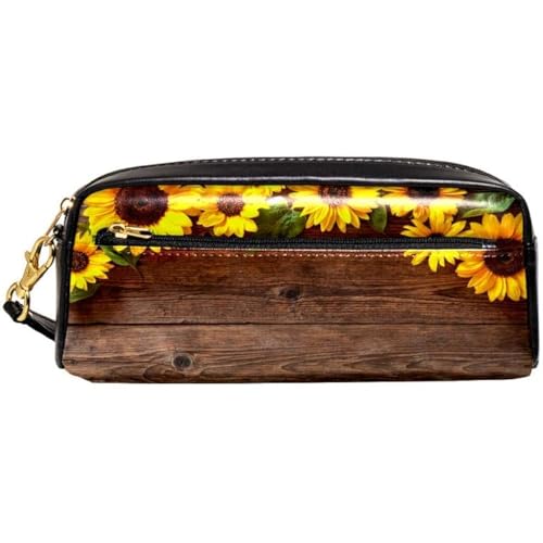 Trousse De Crayon Tournesol d'automne sur Planche De Bois Trousse À Crayons Anti-Salissant Pochette Portable Sac Porte-Stylo pour Étudiants Adulte Scolaires