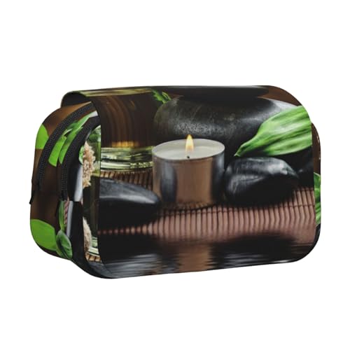 Trousse à crayons avec impression pierres et spa sur le bois près d'un étang - Grande capacité - Trousse à crayons avec 2 compartiments - Porte-stylo - Sac de papeterie