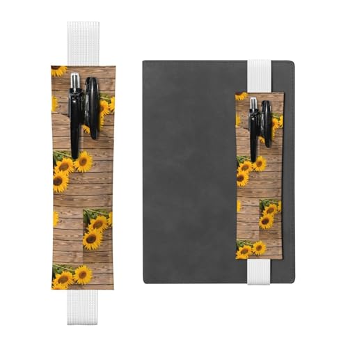 ZhaoYuGoods Trois tournesols sur bande élastique en bois | Pochette à stylo réglable | Joli porte-stylo en cuir, Noir , Taille unique