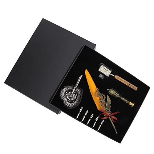 petjoyful Ensemble de stylos à plume en métal, style rétro élégant, gravure claire, pointe plate 1 à 5 mm/0,04 à 0,20 pouces, kit de stylo d'écriture (SP285705 saupoudré d'orange dorée (oie pointue)
