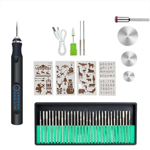 Uolor Stylo Graveur Électrique San Fil, USB Rechargeable Trousse à Outils De Gravure, Mini Outil Graver, Graveur Rotatif de Bricolage Portable Pour Bijoux Verre Plastique Bois Métal