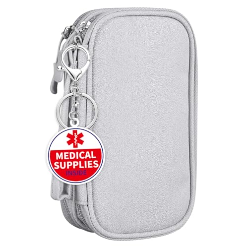 Klyrith Diabetic Supplies Sac de voyage à double couche pour glucose, stylo à insuline, bandelettes de test, seringues, aiguilles, organiseur portable pour médicaments, Gris Z, 19x11x5.5 cm