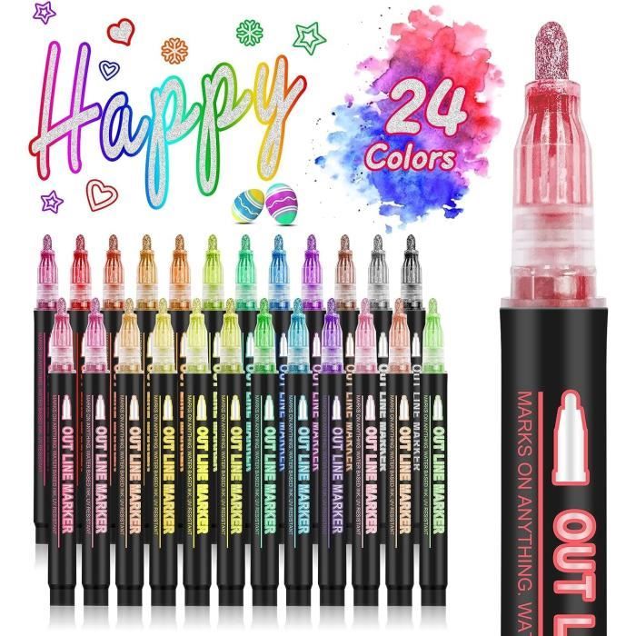 24 Couleurs Stylo Paillette Feutres Paillettes à Double Trait Marqueur Magique Metallique pour Dessin Scrapbooking