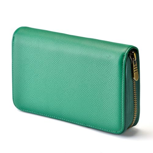 Asvine Étui à Stylo Plume en Cuir avec 10 emplacements divisés pour Stylo Roller Fait à la Main Pochette zippée, Vert Militaire, 1 Count (Pack of 1), Classique