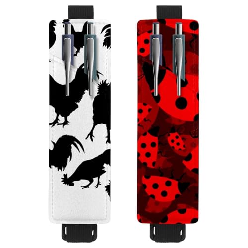 Eslifey Lot de 2 porte-stylos portables 3D en forme de cheval et de plage, pour 2 ou 3 stylos, bande élastique réglable, amovible, Multi 15., 6.1x1.8in/15.4x4.6cm