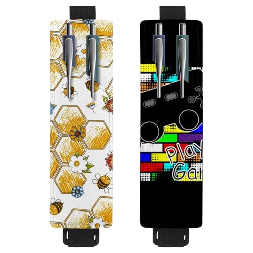Eslifey Lot de 2 porte-stylos portables 3D en forme de cheval et de plage, pour 2 ou 3 stylos, bande élastique réglable, amovible, multicolore 6, 6.1x1.8in/15.4x4.6cm