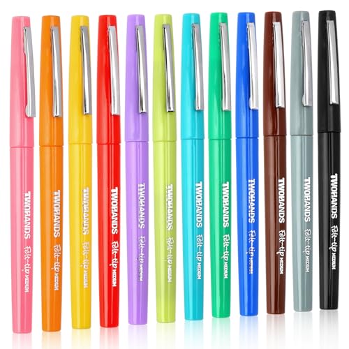 TWOHANDS 12 Stylos feutres, pointe moyenne (0,7 mm), assortiment de couleurs, Feutres de Coloriage Pour Peinture, croquis, codage couleur, journalisation, prise de notes, 22004