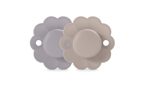 Suavinex, Lot de 2 Sucettes Bébé 6/18 Mois, Sucette Ronde avec Tétine Symétrique SX Pro en Silicone, Réversible, Plate, Flexible, Respecte le Développement Buccodentaire, Wonder Gray/Umber