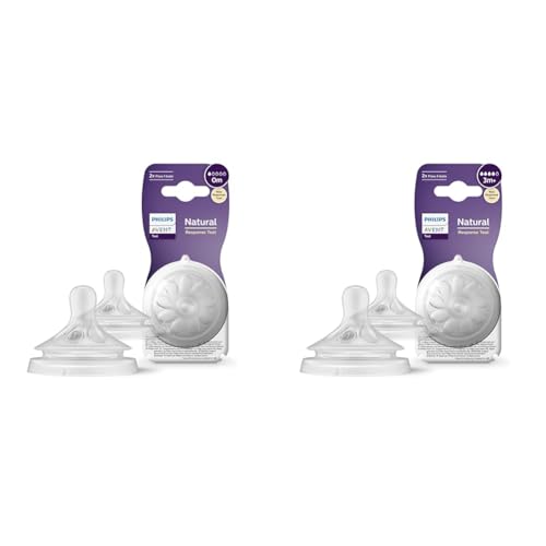 Philips Avent Lot de 2 tétines pour biberon à Réponse Naturelle 0% BPA & Avent Lot de 2 tétines pour biberon à Réponse Naturelle 0% BPA, Débit 4 pour Bébé de 3 mois + (modèle SCY964/02)