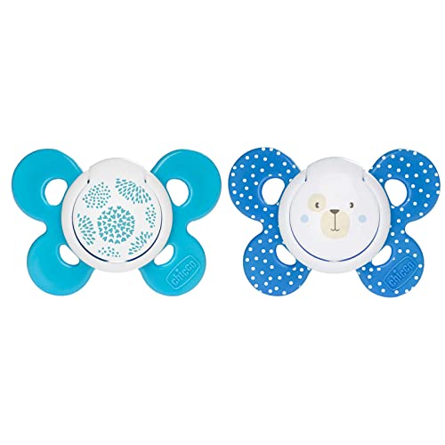 Chicco PhysioForma Micrò, Sucette pour Nouveau-né, Légère avec Mini Tétine, Forme Ergonomique, Soutient la Respiration Physiologique et le bon développement de la Bouche, 0-2 Mois, 2 Pièces, Bleu
